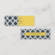 Träkol, vit och Gult Quatrefoil Mönster Mini Visitkort