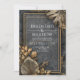 Bjud in dina gäster till en natt av svärmerisk överdådighet med denna inbjudan i kolmårdsmarmor med metalliskt guld och tropiska blad. Denna sofistikerade design domineras av en dramatisk mörkgrå marmorerad textur, vacker sprucken och ådrad med skimrande metalliska guldfärgade accenter som omedelbart förmedlar lyx. Det centrala textområdet definieras av en ren, dubbel guldgeometrisk ram. De nedre och övre hörnen är rikt dekorerade med djärva tropiska bladverk, inklusive en överdimensionerad fläktpalm och stiliserade blad, alla renderade i en svindlande metallisk guld- och bronsstruktur. Detta är den perfekta brevpapper för en glamourös svart tie, modern tropisk eller VIP-lounge-stil event. Du kan utan ansträngning använda denna fantastiska inbjudan för att dela din ceremoniinformation, inkludera mottagningsinformation, ge vägbeskrivningar till din anläggning eller definiera din eleganta