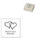 Anpassningsbar bröllopsstämpel för träkonst med två förreglande hjärtan. Dubblans hjärta invävs med vardera foten plus personlig namn av brud och groom. Lägg också till datum för giftermål. Underbar för inbjudningar, spara datumkort osv. Klassskripttypografimall. Elegant DIY-tillbehör för giftermål-par.