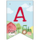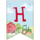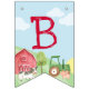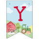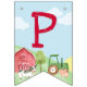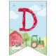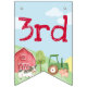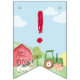 Den här födelsedagsbanderollen blir perfekt för ditt servergruppstema/traktortematerad födelsedagsfest! På banderollen står det "Lycklig 3:e födelsedag", men du kan anpassa dig efter ord och ålder efter ditt val. Perfekt för en födelsedagsfest av "Three-I-E-I-O"-djur. Konstruktionen har en gårdsscen med röd lada, grönt, ko och gris.