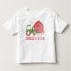 Toppen söt t-shirt för ditt barn/småbarn för traktorns/gårdens temade födelsedagsfest. Perfekt för en 3:e födelsedag med "Jag är TRE-I-E-I-O". Utformningen har en röd lada, grönt, ko, gris och chick.