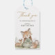 Lägg till en söt finish på dina baby shower-favoriter och presenter med denna trälandstematiserade etikett med en mjuk akvarell rävflicka, liten hjort och uggla. Den milda layouten och moderna texten passar vackert med dina matchande shower-inbjudningar och brevpapper. Anpassa namnet för en charmig detalj som dina gäster kommer att älska.