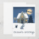 Träligt hus i en snöig julnatt  julkort