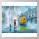 Tram oljemålning regnig dag paraply poster