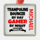 Den här anpassningsbarna är ett prydnadsföremål med citatet "Trampoline Bouncer by Day Gamer by Night" som är perfekt för alla trampolinbanor som kärlek spelar videospel.
