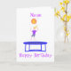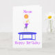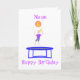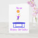 En flicka på en trampolin som sjunger boll i luft. Lägg till ålder i boll och namn på kortets framsida. Lägg till ditt och flickornas namn invändiga kort och eventuella extra-meddelanden om det behövs. Flickor med födelsedagskort med ställe för namn och ålder på framsidan och anpassade på insidan