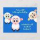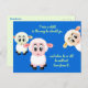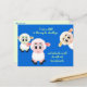 Små lamm, på blå vykort med anpassad text. Använd som en inbjudan till söndagsskolan, eller av någon annan anledning, eftersom all text kan raderas eller ändras. Kristet skriftställe på framsidan är från vishetens bok och lyder "Träna ett barn på den väg det ska vandra, så överger det den inte när det blir gammalt". Färgen är klarblå med tre lamm på framsidan. Ett personligt meddelande eller inbjudan kan läggas till på baksidan.