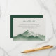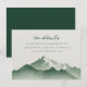 This wedding enclosure card features a serene and nature-inspired design with a minimalist layout on textured, off-white paper. The color palette includes soft, muted greens that create a tranquil atmosphere, complemented by an abstract watercolor mountain range at the bottom. Elegant cursive typography highlights "the details," while simple serif font provides clear instructions for further information, ensuring both style and readability. The overall mood is peaceful and inviting, making it perfect for couples seeking a harmonious and natural aesthetic for their special day.