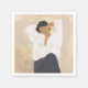 En minimalistisk målning av abstrakt med ett avslappnat figur med stängt ögon och arm som vilar bakom huvudet. Bilderna användor mjuka, varma toner och förenklade penseldrag, vilket framkallar en känsla av lugn och inåtriktning. Människans vita skjorta kontrasterar försiktigt med de mörkare tonerna i byxor, vilket ökar serenstämningen i biet.