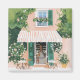 En gouache från en pikturesque-kafé med gröntar och blommigt-balkong förbiser ett vibrerande yttre sittområde. Solljus filtrerar genom och bjuder in patroner att njuta av ett fredligt ögonblick mitt i en blomstrande grön värld.