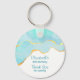 En part befordrar nyckelring med en seriemönsterdesign. Turkos/akvatisk grönt vattenfärgsbild med vågigt faux guld gräns. Elegant och underbar.