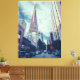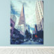 Det här är en vinkel bild av Transamerica Pyramid i San Francisco i Kalifornien, omgiven av andra höga byggnad. Himmel är delvis grumligt med en blandning av blått och grått-toner. Bilarna parkeras längs gatan, och det finns träd som sitter bredvid sidgångarna. Den allmänna stämningen är stads- och modernt, som fångar stadens arkitektoniska landskap.