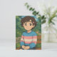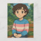 Cute anime transgender person in a trans sweater sitting outside on a bench. A sweet postcard to say hi and keep in touch with friends or family.