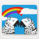 Det här är ett sött par som är transgender och lesbisk. De råkar också vara papegojor. Regnbåge, blå himmel och vissa moln och hjärtan i bakgrunden.
