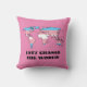 Anpassade dekorativ kudde med karta i världen i färg i flagga över det transsexuella pridet, en utformning med rosa som bakgrund. Texten "Låt oss förändra världen" är en malltext som kan ändras.