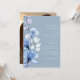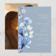 Denna eleganta dammiga blå blommiga bröllopsinbjudan kan anpassas med din information i chic typografi med ditt speciella foto på baksidan. Designad av Thisisnotme