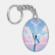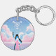 Feminina silhuetter står under en sockervaddshimmel med en vit transgenersymbol på himlen likt fladdermus-signalen, den har en hjärta i mitten.