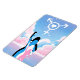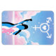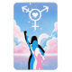 Feminina silhuetter står under en skymning med rosa och blått i nyanserna av en sockervaddshimmel med en vit transgendersymbol på himlen likt fladdermussignalen, den har en hjärta i mitten.