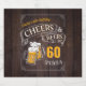 Snyggt hyllar och öl till 60 års typografi på brunt träkornbakgrund, anpassningsbar den med din egen text, roligt och unik, underbar för vilken födelsedagsfest som helst i vuxen som är för manar, eller årsdag party för vilken tillfälle som helst.