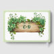 Den här rustika vårbröllopsgästeboken har en charmerande traram omgiven av frodig grönska. Framsidan är elegant personifierad med parets namn i en slående fet font, medan baksidan visar parets initialer inom samma förtrollande ram. Det finns också en kant med ömtåliga blekgröna ränder runt gästebokens fram- och baksida. Denna design utstrålar en vintage och romantisk känsla, perfekt för att fånga minnen från en speciell dag fylld med kärlek och glädje.
