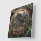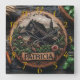 Träring av häst nära Rustic Farmhouse Fyrkantig Klocka