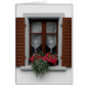 Window ram och shuttrar med röda blommor i Vaduz, Liechtenstein.