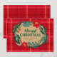 Illustrerade höjdbotaniska växter och julstjärnor omger en redigerbar hälsning på en träskiva som ligger ovanpå en rutig bakgrund.