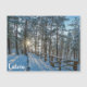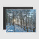 Visa snöskog i gräs med sol-strålar som kommer genom och väg för att underlätta promenader. Täckte i snö gräs, och grisen i träd.