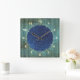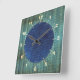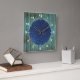Den digitala konstens väggklocka har en blå tonad bakgrund på träplattan med handskriftsöverlägg.