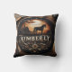 En handgjord träskylt visar en hästsilhuett med land inslag, med namn Kimberly i ornatera bokstäver mot en solnedgång.