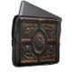 Denna laptop sleeve dekoreras med en lägenhet avbildar av ett härligt konstnärligt trä som in snider, skuggar av brunt, guld, mahogny och svart. En centralabstrakt cirkulär somblomman avbildar, har petals som ut utstrålar till som snidas för att cirkla som omges av fyra delar upp. Varje delar upp har abstrakt lövcarvings. Avbilda är, så realistiskt verkar den tredimensionell.