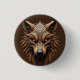 Den invecklade varghuvudsnidningen har geometriska mönster som framhävs vackert mot rustika träskivor. Den detaljerade designen och de livfulla färgerna visar upp experthantverk och konstnärlig kreativitet.
