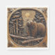 Rustika träsnidningar ser ut som pappers servetter med en björn som står i en tallskog under fullmåne.