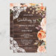 Skicka dina gäster en vacker bröllopsinbjudan med detta trä och spets med rosé och päronfärgade blommor med ljus. Perfekt för rustika, lantliga och bakgårdsbröllop.