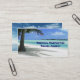 Vackert ikonfoto av ett tropiskt paradis med turkos blå vatten och en vit sandstrand med handflatan träd. Underbart affärskort för resebyråer eller resebyråer i agent och semesterbolag i egendom.