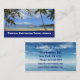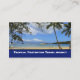 Vackert ikonfoto av ett tropiskt paradis med blå vatten och en vit sandstrand med handflatan träd. Underbart affärskort för resebyråer eller resebyråer i agent och semesterbolag i egendom.