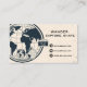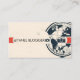 A vintage-inspired business card for a travel blogger, featuring a global map motif, a camera icon, and space for a social media handle.