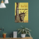 Vintage resor poster för New York, Förenade Luft Linjer, visar huvud och utmed arm i Frihetsgudinnan. Folk spelar ut hennes krona, och i bakgrunden, New York City, runt 1960