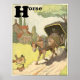 Alfabetbokstav H är för "Häst" som drar en vagn med en brevbärare som färdas längs en grusväg förbi ett traditionellt korsvirkehus på landsbygden. Teckning av den franska konstnären Benjamin Rabier. © KidsLife