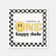 Den här pappra napkin-roligten med första födelsedag har ett återbildsteckensnitt och gult smiley face med en utcheckad bakgrund. Den här napkin är perfekt för din lilla man att fira sin första stora födelsedag! Pair med vad som helst i TRAVIS-insamlingen för en sammanhängande titt.