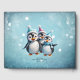 Tre vidskepliga pingviner står i festliga vinterhattar och färglösa scarfar. Deras stora, runda ögon skiner med glädje, medan deras fluffa vita bellier kontrasterar med det ljusblå Julgran som dekoreras med ljus. Penguinerna leker glatt och verkar redo att fira julhelgens magi. Alla runt omkring dem dansar delikat snöflingor genom luft, medan dubbla stjärnor lyser i himmel och skapar en varm, festlig atmosfär. Den här utformningen fångar perfekt julstämningen - fullt av glädje, vänskap och vintertid !