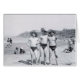 Detta kort presenterar en vintage fotograferar av tre manar som har roligt i enfaldiga hattar på stranden. Tom insida.