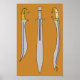 Richard H. Fay illustrerar tre svärd från det gamla Grekland: en maskerad machaira med en kanter, en dubbla-konfekterad löv-bldad humlit xifos och en framkantskop med en kanter.