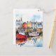 Vacker akvarellbild av båtar i en engelsk kusthamn.