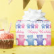 Tre gulliga lite nallar i rosor, lilor och blått.