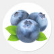 Tre blåbär runt klistermärke