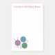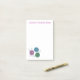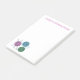 Ett handligt anteckningsblock med 4 x 6 tum klibbigt för en stickare, dekorerat med en färgad teckning av tre bollar garn och ett par stickande nål. Garnet är färgadens grönt, rosa och blått. Du kan anpassa anteckningsblocket med ditt eget namn och ord. Teckning utfördes för hand och är unikt för LyricalSixties på Zazzle.