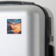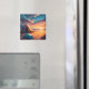 Fredlig skogig campingkonst. Tält, stugor och lägereldar i varma vintagefärger som brun och blå.