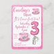 Inbjudan till Tjejens 3-årsdag "It's Time for Tea". Denna söta illustration är perfekt för lilla prinsessans tredje födelsedagsfest. Samla familj och vänner och fira det tredje året. Söta, mjuka pasteller och rosafärgade nyanser omger tekoppar och ballonger. Ta fram teservisen och lägg till lite rosa lemonad. Låt din lilla tjej vara värdinna på hennes speciella dag. Låt henne servera "te" och tårta. Denna par-te är garanterat söt.