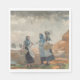 Den amerikanska konstnären Winslow Homer (1836-1910), som sedan två år tillbaka har bott i den engelska kustbyn Cullercoats, har en färgsmålning. Det visar tre unga flickor som ägnar sig åt traditionellt fiske längs den hårda kusten. Flickorna står på en klippig kustlinje och glömmer havets vågar. De är klädda i enkla, väderbeklädda kläder, som betonar deras samband med den naturliga miljön. De håller nät och basket i händer, redot att samla in fisken, men för närvarande chattar de vid kusten. Genom att skildra dessa unga flickor i en tuff och krävande kustmiljö betonar Homer deras styrka, motståndskraft och anslutning till havet. Kvinnorna kommer från Tynemouth, som är en kuststad i norra Tynesiens storstadsområde, i norra Öster England, som historiskt sett ingick i Northumberland. Den ursprungliga konsten målades av Winslow Homer 1881.